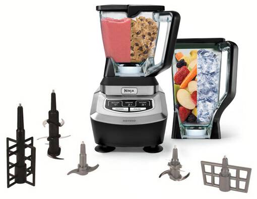 Ninja Kitchen System, 72 Oz. Pitcher with Lid, 6 Blade Assembly, 40 Oz. Bowl with Lid, 4-Blade Assembly, Dough Blade, Dough Paddle, Whipping Attachment, Grated Fill Spout with Cap, Suction Feet, Power Cord, Owner’s Guide
