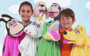 I think between my two kids we must have a total of 100 stuffed animals in our house.  They love them and I remember that I did, too, as a kid.  There was barely enough room for me in the bed with all my ‘guys.’  So when an adorable blue elephant CuddleUppet was delivered to our door, you can imagine how excited they were! There may have been one or two battles in the war over this guy before my son successfully staked his claim.