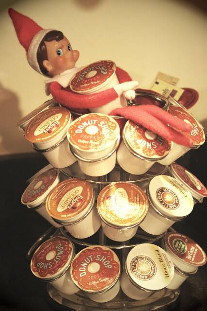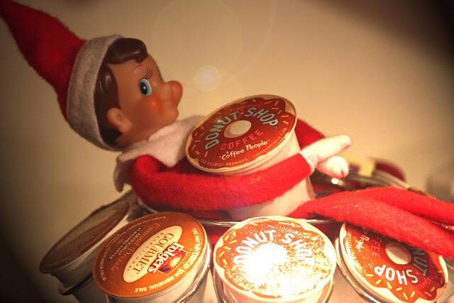 This morning I was the first one to spot Tootsie. He was cozied up with my this-is-what-gets-me-out-of-beds. Have I said before that he’s my kind of elf? He really is! Any elf who wants a k-cup for breakfast is a-okay with me. Can’t wait to see where we find him tomorrow morning!