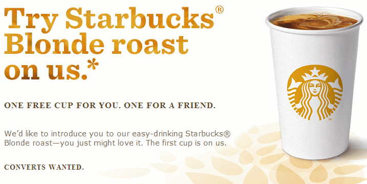 Here’s an awesome freebie for my fellow coffee addicts! Head over to request your eGift from Starbucks in the amount of $2.60, the cost of one tall cup of Starbucks Blonde roast coffee. After you enter your email address to claim the offer you’ll be able to share it with a friend, too!