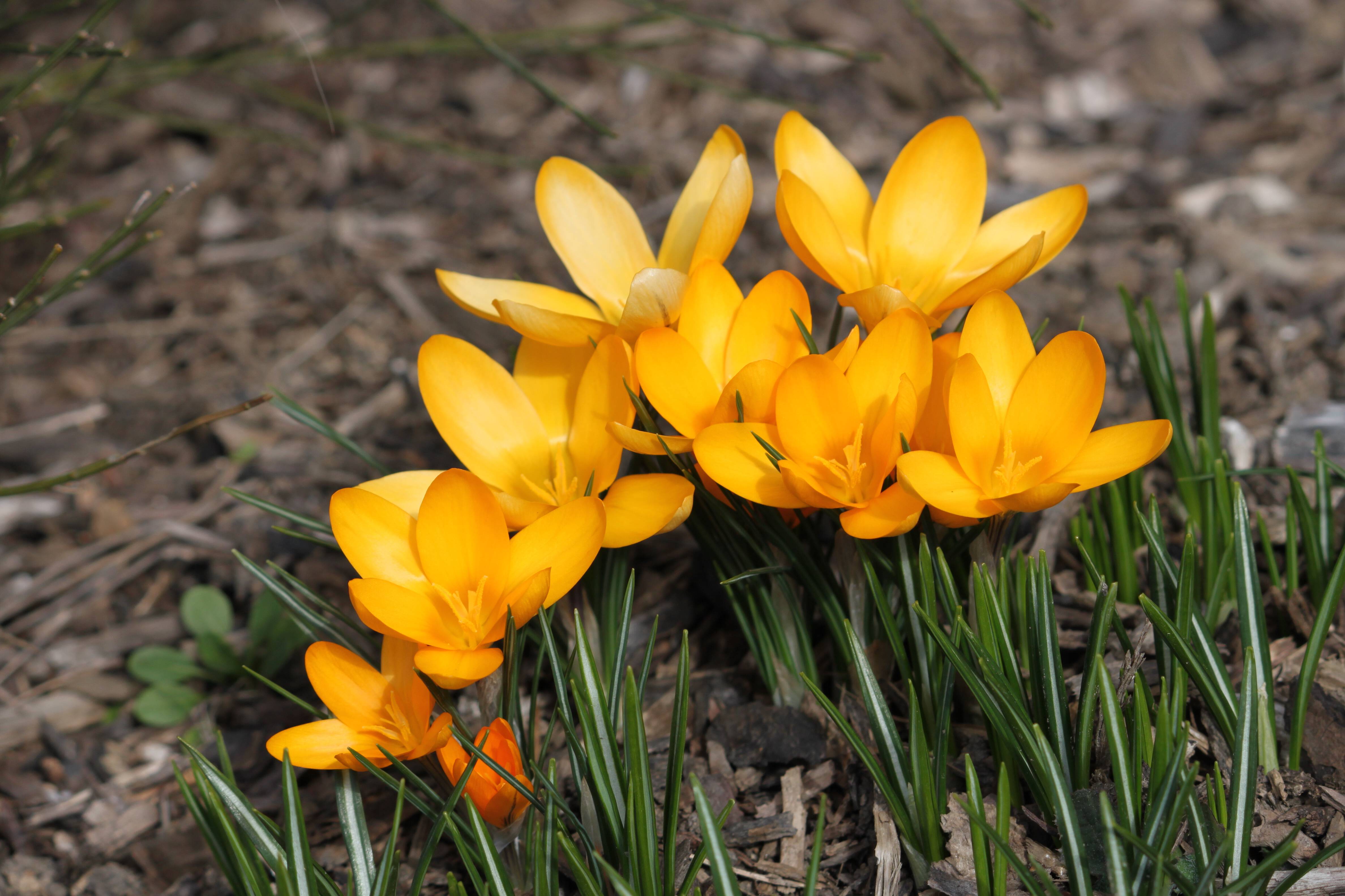 Warmer weather is on its way and there are signs of spring around our house! This week I saw a blue bird in our yard and a bunch of my bulbs are popping up. I can’t wait for the tulips to bloom. They’re my favorite. One of the first flashes of color always comes from my crocuses. I thought I had a few purple ones in the mix here but so far only yellow flowers are in bloom. Aren’t they pretty? I love this early reminder that spring is just around the bend.