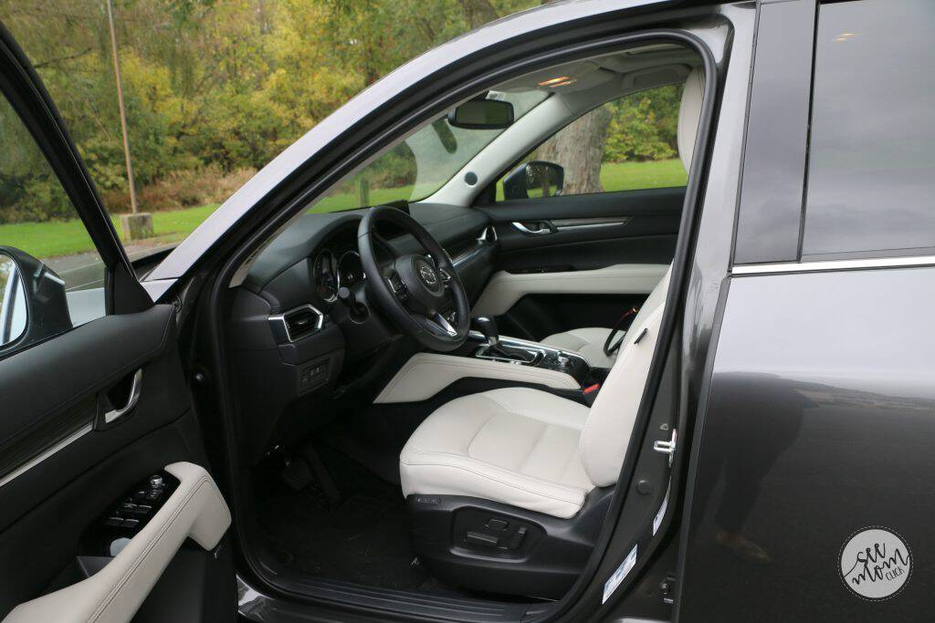 The Mazda CX-5 is a crossover vehicle, so it’s what I consider a smaller SUV, and I love the size of it. I like a car that feels spacious on the inside and has plenty of room for my family and all of our stuff (groceries, soccer bags, etc) but doesn’t make me feel like I’m driving a huge monsters down the road. I just feel more in control in a vehicle this size, so I immediately felt comfortable behind the wheel.